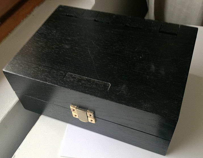 Kela, tavallisuudesta poikkeavassa, alkuperäisessä puulaatikossa.