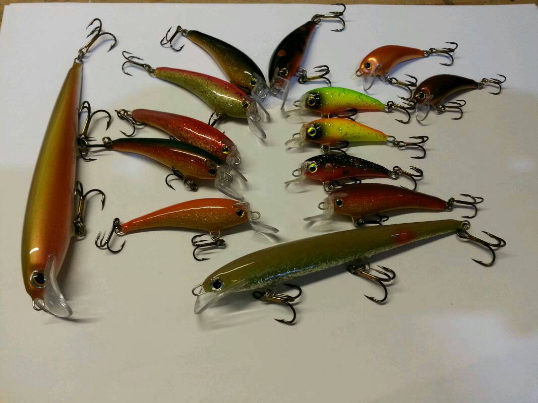Tässä meikäläisen ensimmäisiä kappaleita. Pääsääntöisesti avovesikaudella tulee vaaputeltua pintakalvoja niin virroilla kuin seisovassakin vedessä. Hieman totuttelua ensin vaati tuo ruiskun käyttö ja muutaman testikappaleen, että löytyi sopiva painotus ja uinti, ennenkuin kehtasi alkaa kunnolla maalia ruiskimaan.