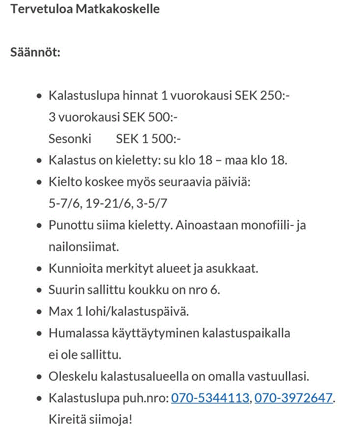 Vaimon sukulaiset saapi kärsiä mun harrastuksesta näin kesän alusta, asuvat aivan matkakosken vieressä niin ei enää parempaa majapaikkaa vois toivoa... Täydellä ylläpidolla ilimanen majoitus. :bigboss: