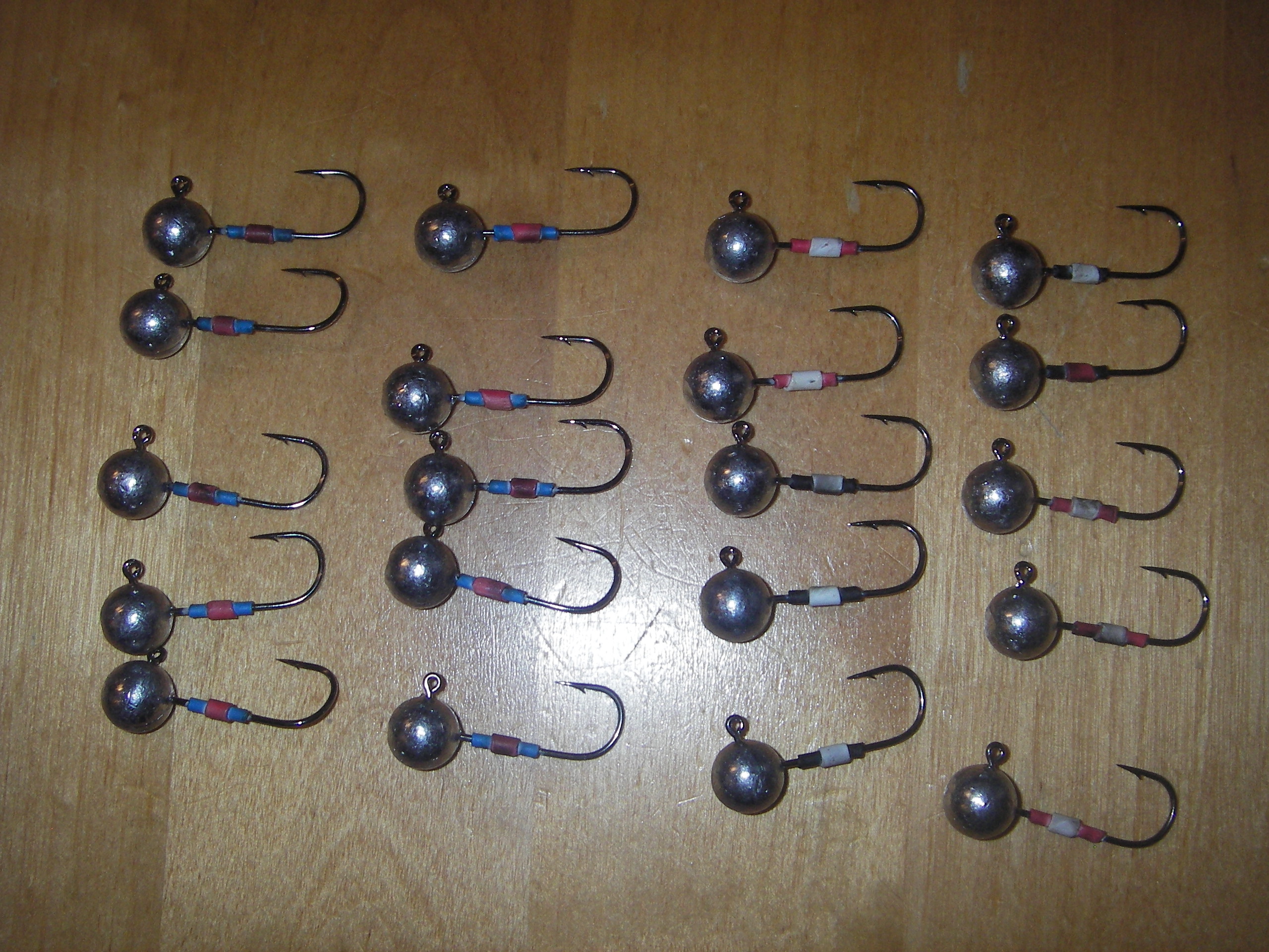 Tilasin myös matalaan veteen jiginuppeja, jos kokeilisi jigipilkintää. Tilasin 1, 1,5 g ja 2 gramman jigipäitä, kymmenen kappaletta kutakin kokoa, hintaa tuli tuli toimituskuluineen 6,70 €, eli noin 0,23 euroa/kpl. Muita nuppeja on sitten kasa, 3 ja 5 gramman malli "luoti", 5 ja 7 gramman pyöreitä jiginuppeja. Mietin vielä näitä 3 gramman pyöreiden jiginuppien tilaamista, onko tarvetta.