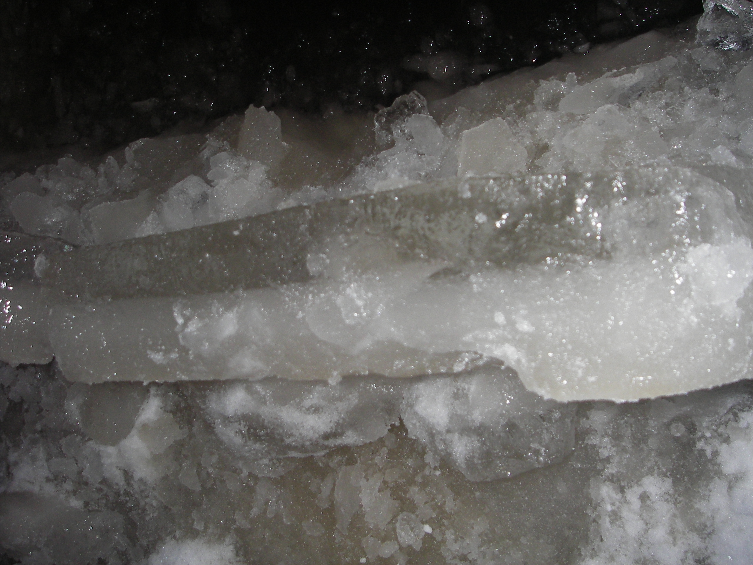 Kohvakerroksen lisäkksi noin 15 cm varsinaista jääkerrosta. Jää on aika pehmeää ja pakkaset eivät ole purreet juurikaan tähän kerrokseen.