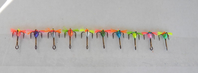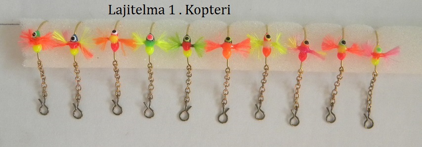 Tarjolla myös kokoihin 16, 14 ja 12 tehtyä tupsuvärikoukkulajitelmia. Kymppisettinä, Speciaalina ja uutuutena Pun/ora-sävyt