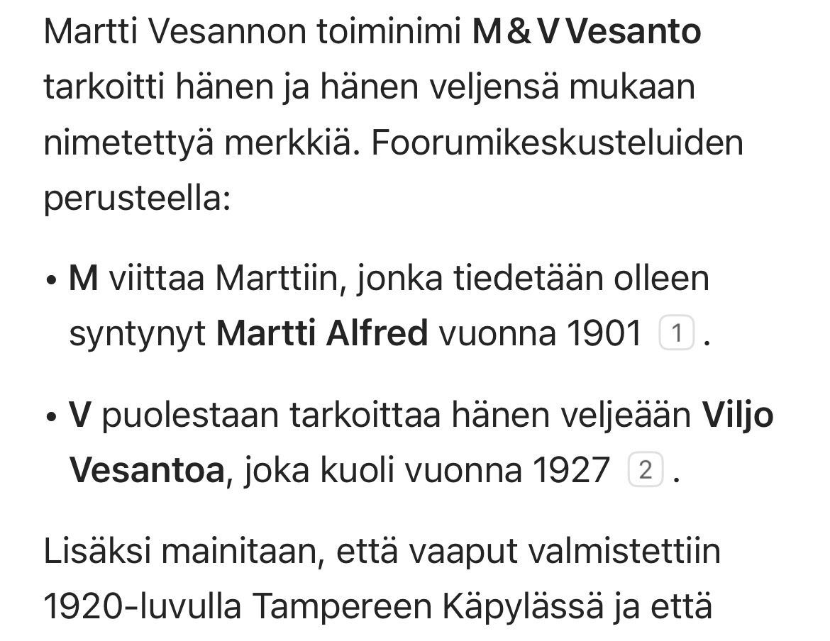 Mutta tuollaista M & V Vesanto -toiminimeä en ollut löytänytkään! Kiitos, se oli hyvä apu.