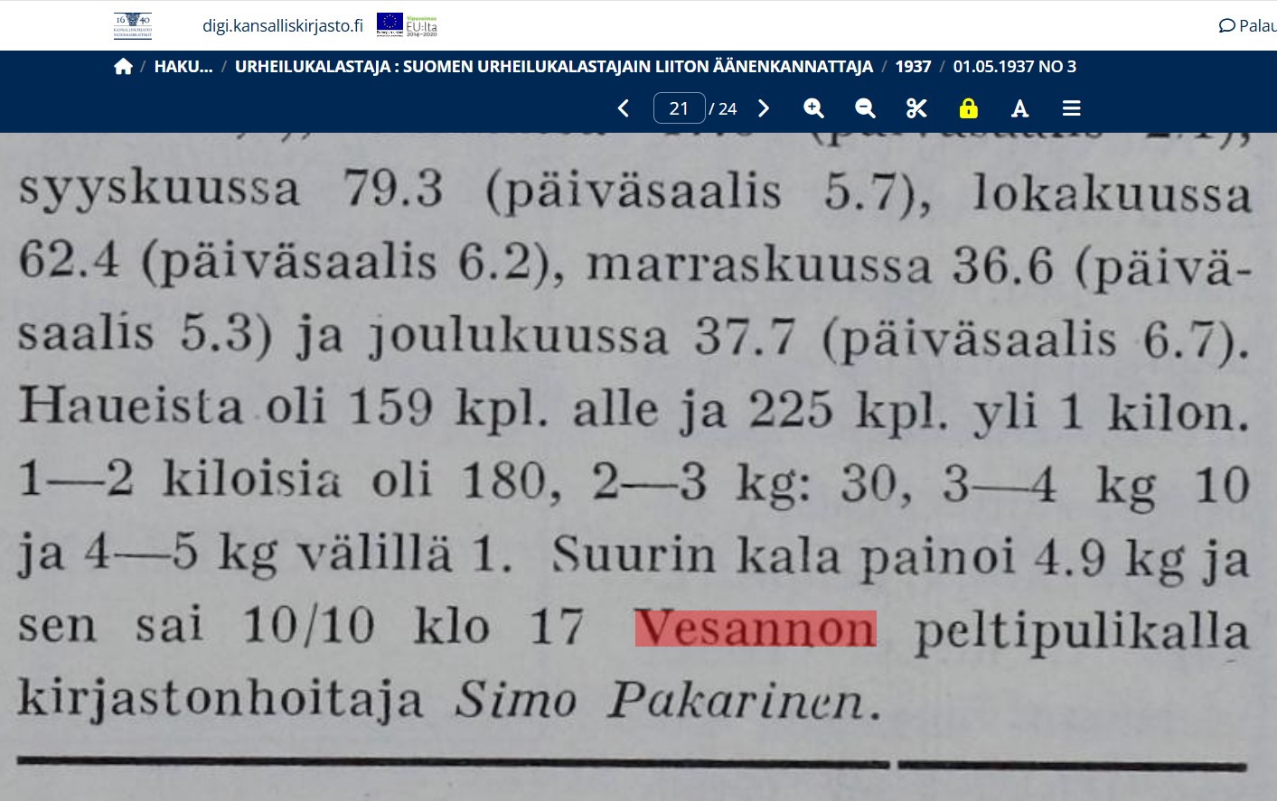 LISÄYS. kova haukityyppi ollut kirjastonhoitaja Simo Pakarinen. saanut liiton (hauki) vesiltä suurimmat hauet 1936.