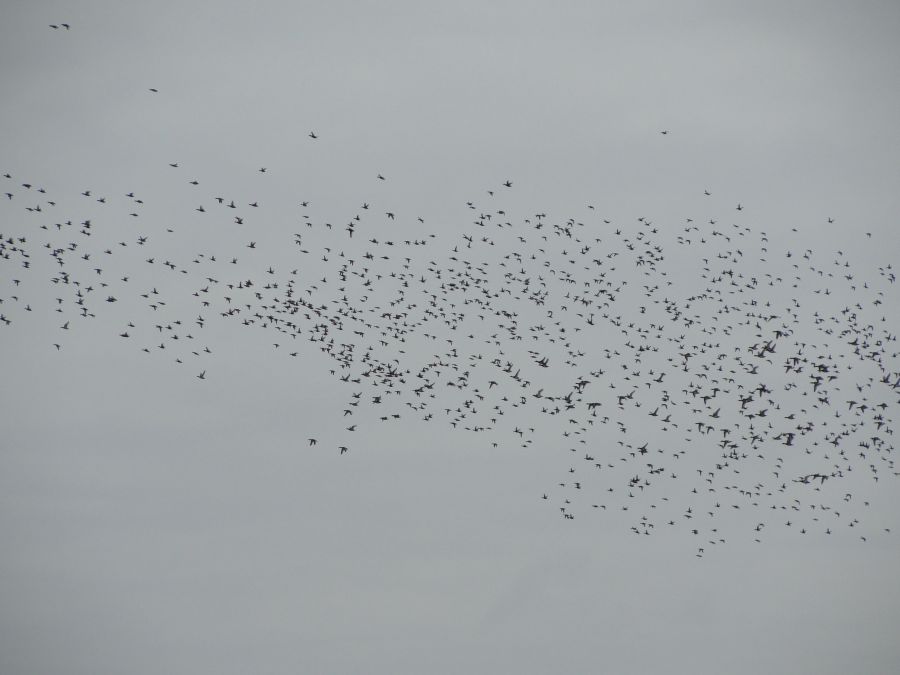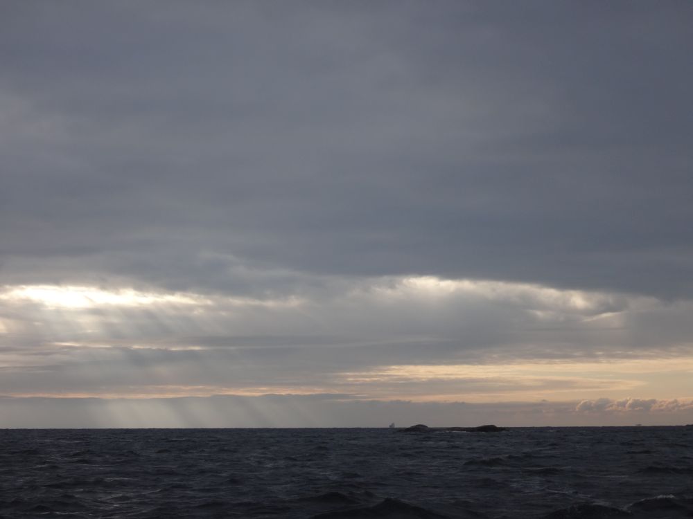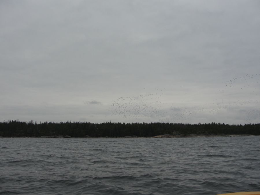 Toissa viikolla merellä vastaani tuli iso lintuparvi. Ennen kun sain kamerani (pokkari) esille, niin parvi jakautui neljään tai viiteen osaan.