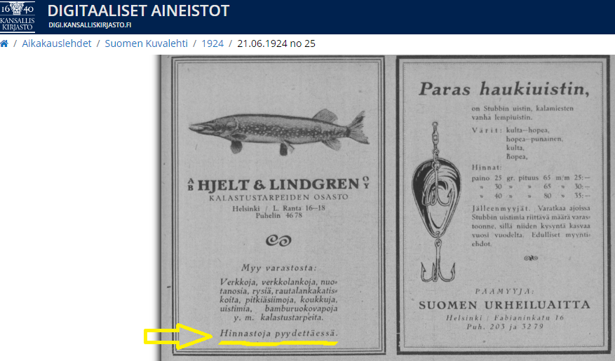 esim. vuoden 1924 KALASTUSNUMERO ..! (koko lehti kalastusta, tai siis melkein.)