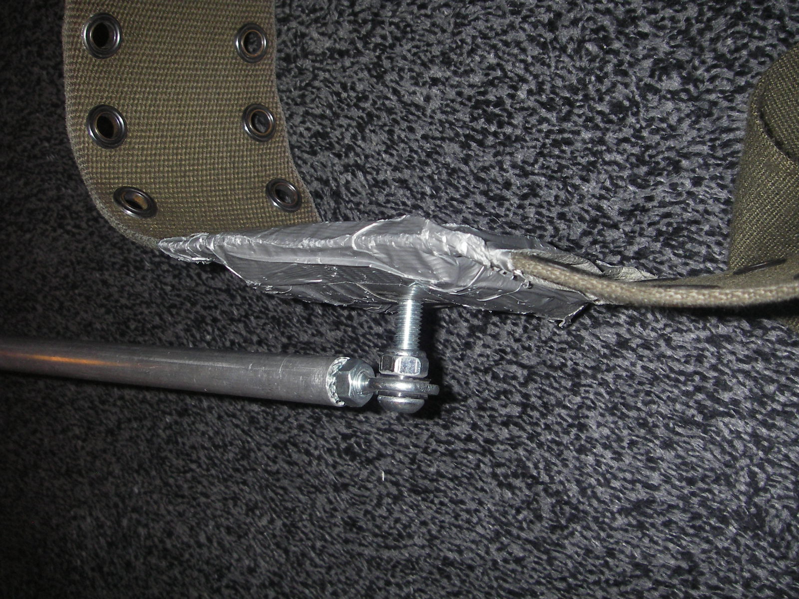 2 kpl vetolaippaa, näkyy kuvassa, on pultattu alumiiniputken sisään noin 40-50 mm syvyyteen, sahalaitaprika ja mutteri estämässä vetolaipan kiertymistä auki.