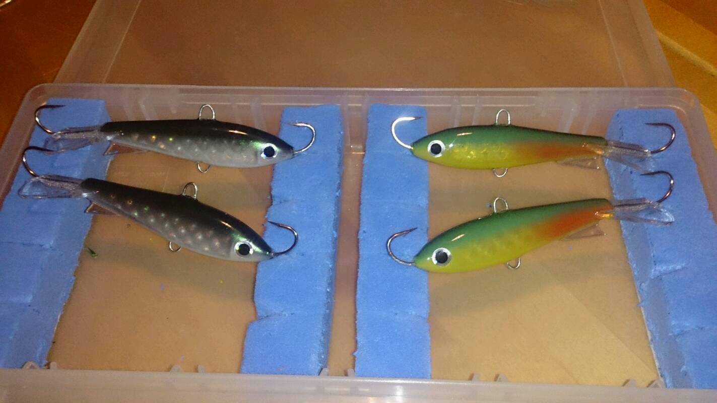 Noista mitoista vielä, niin pienempi oli koukusta koukkuun 9 senttiä ja painoa 18g ja isompi 10 senttiä, profiililtaan paksumpi, myös painoa 18g.