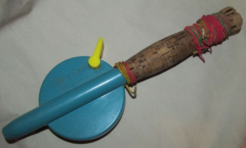 Dc:ltä ostetussa, lukee Nyky, made in Finland, ja kammen puolella Kahir, kalastustarvike.