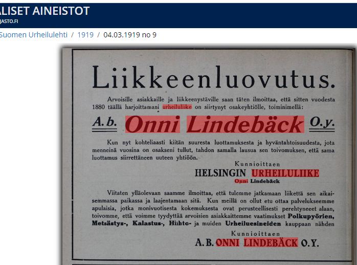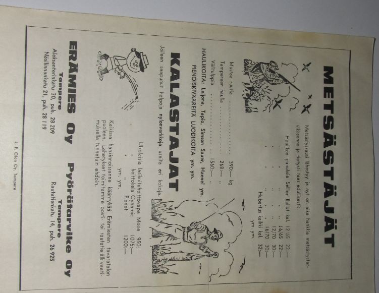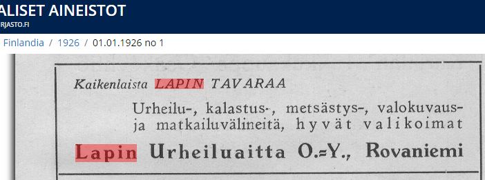 katselin kansalliskirjaston aineistosta mainoksia:
