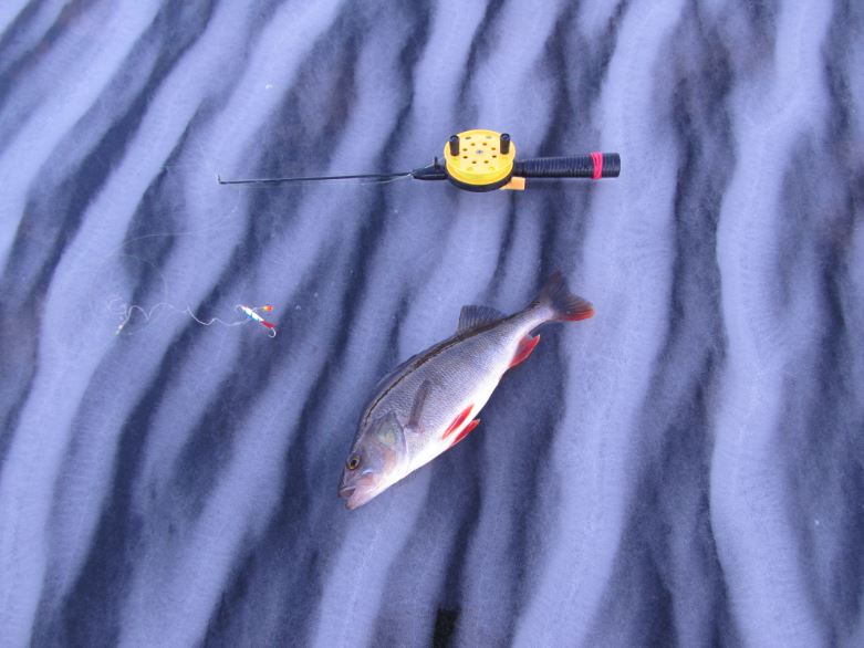 Myöhemmin hommasin isompien pilkkien heilutteluun isomman harmaan-korkkikahvaisen, nyt en vain muista onko siinä yksi vai kaksi tappia kelalla, täytyy käydä tarkistamassa.
