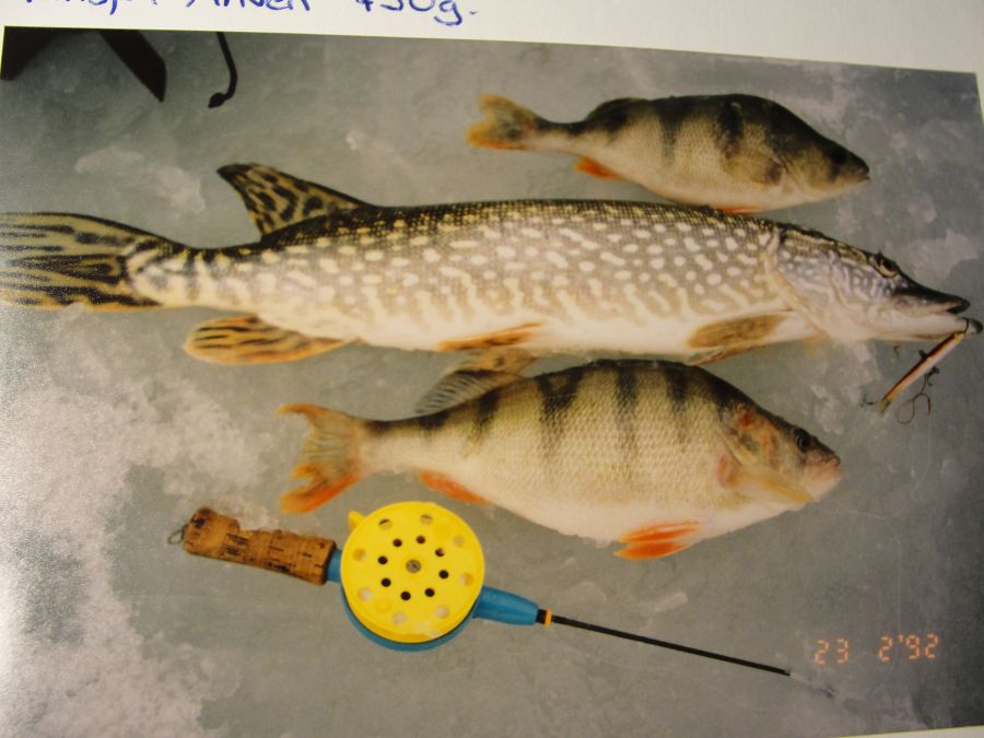 kuvat ehkä 90 luvun ekalta puoliskolta. hauet mereltä. ahven pieneltä lammelta. keväällä, loppujäiltä. ei mitään korkeapaine aurinkopäiviä, vaan utuisina kosteina hämräpäivinä öö.. semmonen lehmänhenkäyskeli. yleensä tapahtuu jos alla putki aurinkopäiviä.
