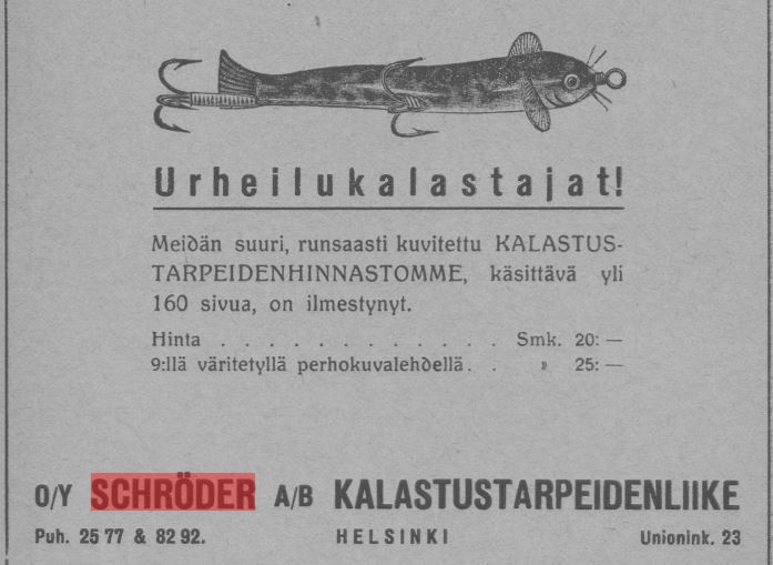 avasin Schröderin kalastusvälineliikkeelle oman otsikon.