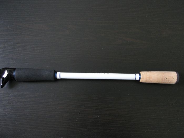 Tuli heti sellainen tunne, että jotain tälle tarttis tehdä. Takakahva on tässä vavassa itselle liian pitkä. Tykkään, että hyrrävavan takakahvaa voi käännellä - käsivarren ollessa kyynärpäästä 90 asteen kulmassa- vaivattomasti käsivarren ylä- ja alapuolelle. Tämän tyyppisessä vavassa takakahva voisi olla itse asiassa huomattavasti lyhyempikin, makuasioita.