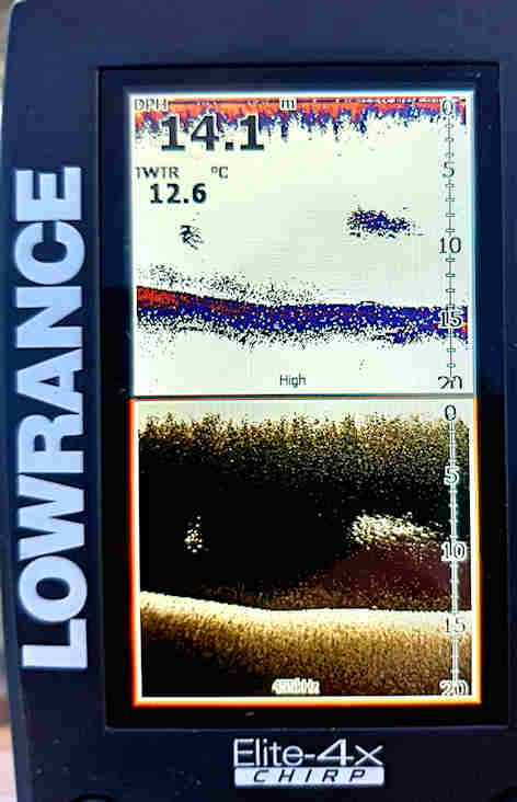 Vielä: mitä tuo silppu tuolla pohjassa 15m:n syvyydellä voisi olla (luotaimen ylin ruutu, alemmassa sitä ei näy, ei siis kaloja?) plaktonia? Kalakaiut olisin tunnistavani 10m:n syvyydelle. Kalat = muikut ja kuoreet näyttivät olleen aika lailla juuri tuossa 10 metrissä, joitakin kaloja pinnempana, ahvenet, särjet?