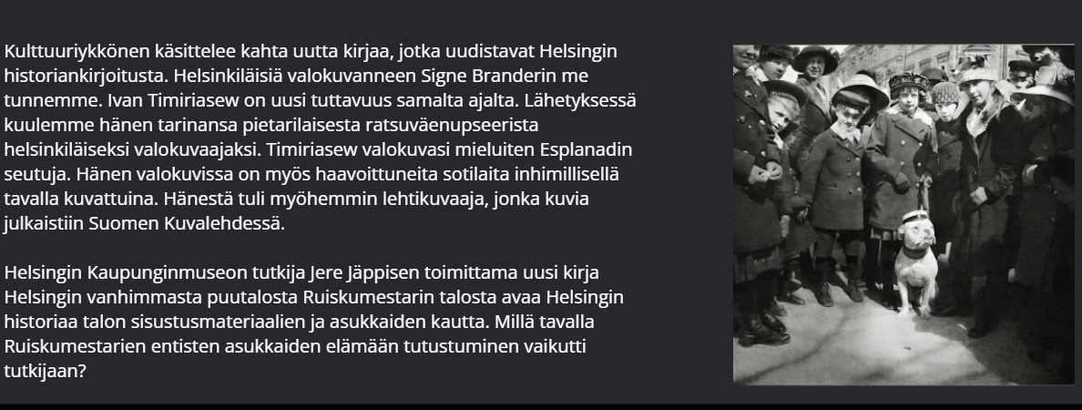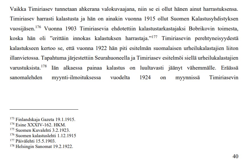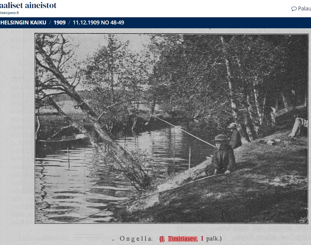 nimi tuli itselle esiin kun kuuntelin radiosta ohjelmaa jossa puhuttiin Timirisevan Helsinkikuvista. ja uudesta tutkimuksesta tai kirjasta..