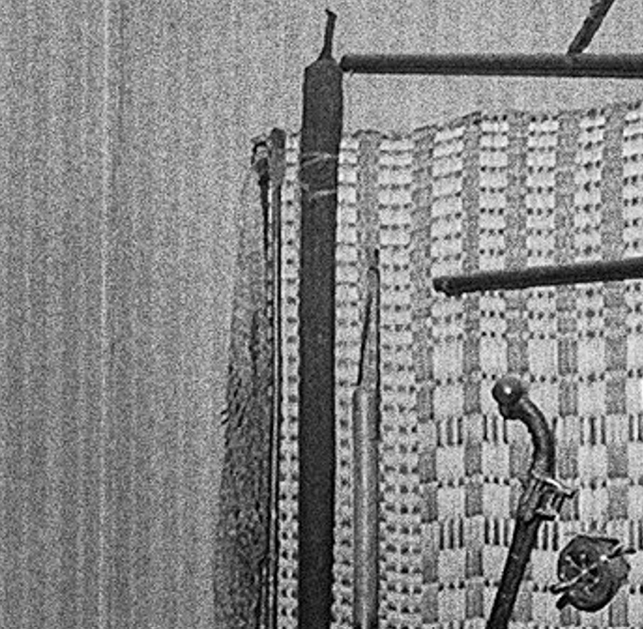 seinällä muutama kela, ja ryijyn laidoillan vapapussit.