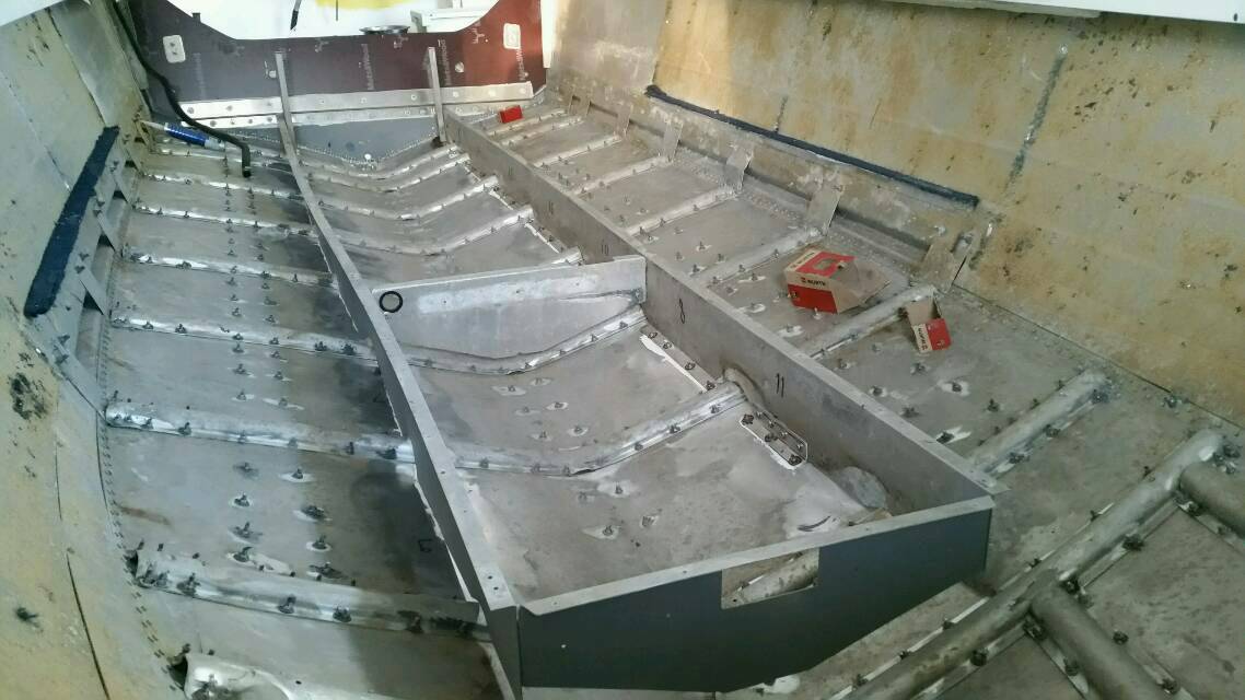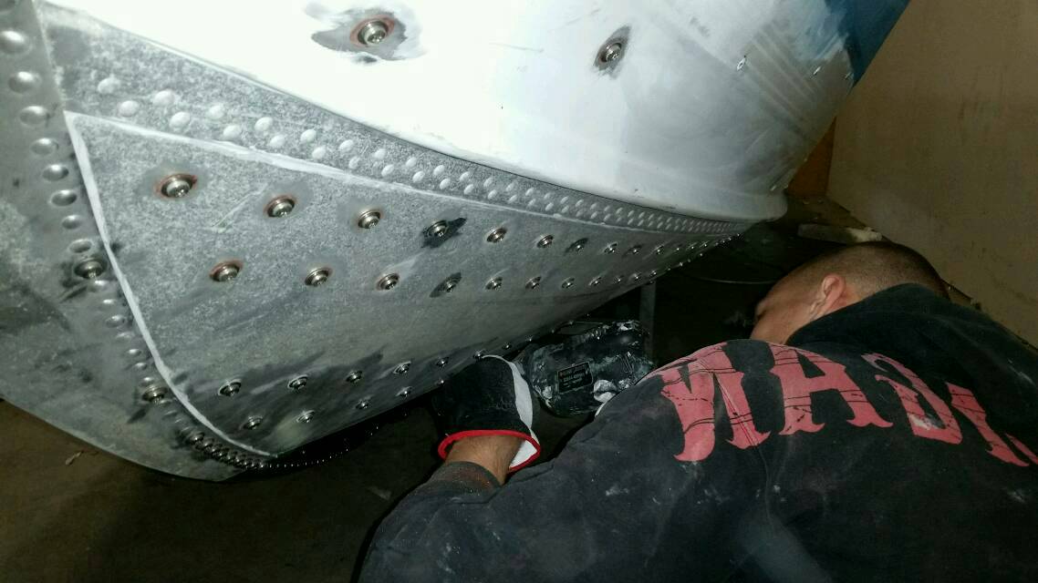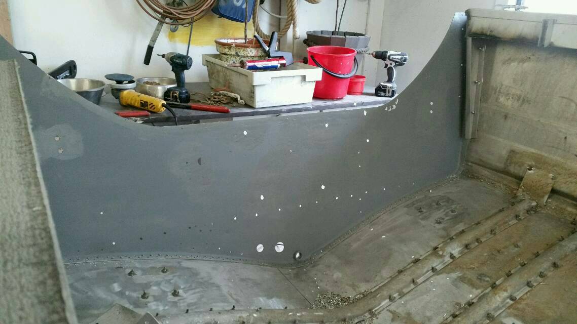 Homma on siinä vaiheessa, että kaikki niitit, jotka päätettiin vaihtaa pulteiksi on nyt tehty. Eikä niitä pultteja mennyt kuin n.1300kpl... Voi kiasus mikä poraaminen... Ainoiksi niittiriveiksi jäi vattan ja kylkien liitokset sekä peräpeilin pystylinjat, joihin ei veden paine sun muut vaikuta, niin tuskimpa ikinä niistä alkaa vuotamaan.