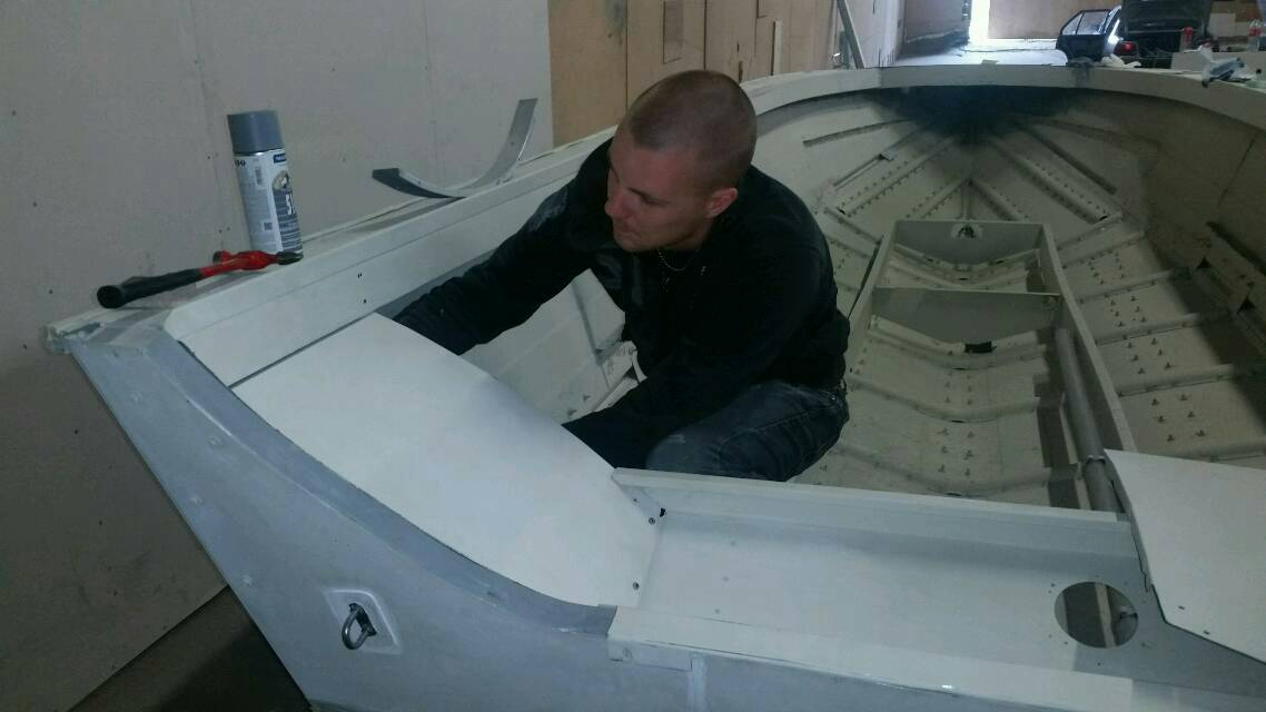 Veneen "keulakolmion" tukipuut vaihdettiin 20mm vesivaneriksi ja kaikki kiinnikkeet tehtiin uusiksi merialumiinista.