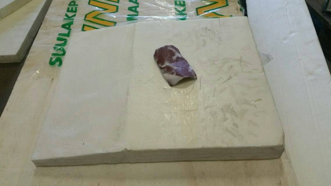 Ensimmäisiä palasia leikeltiin villaveitsellä ja homma tyssäsi siihen, että pohjan muotojen veistely ei onnistunut.