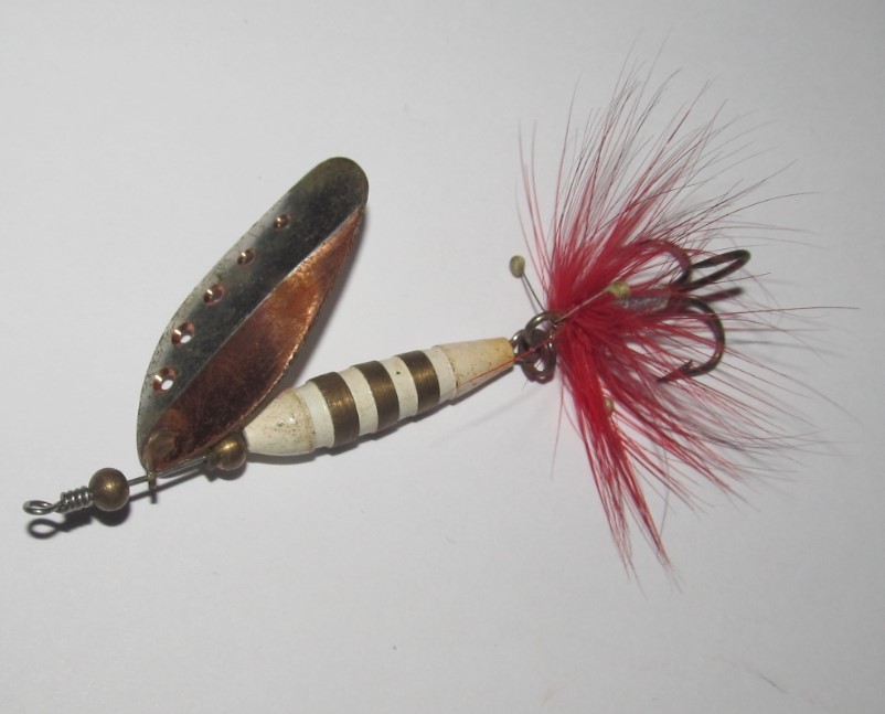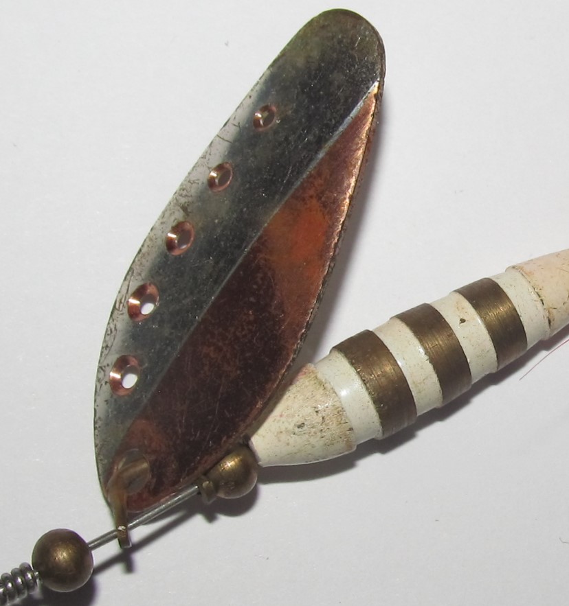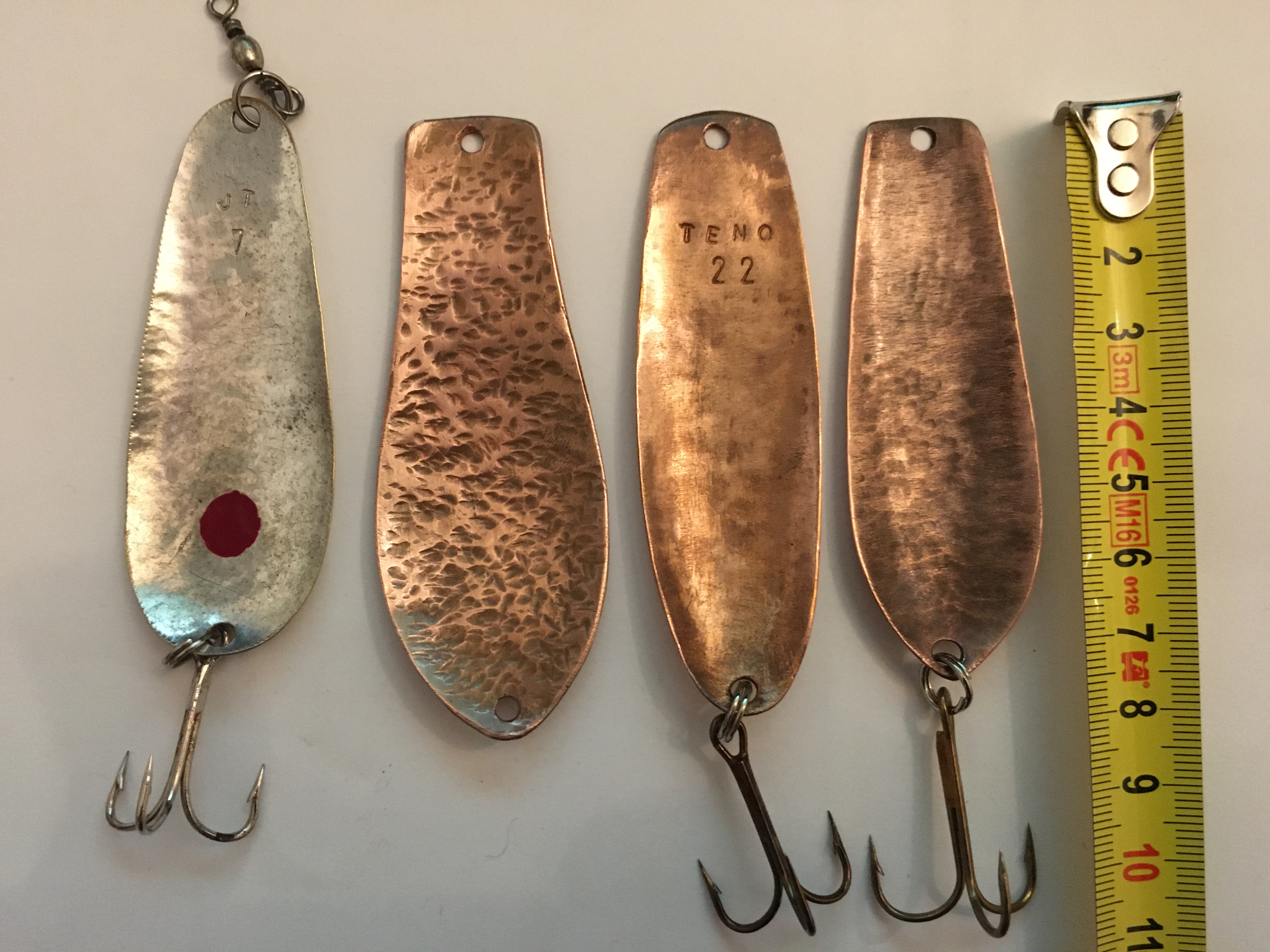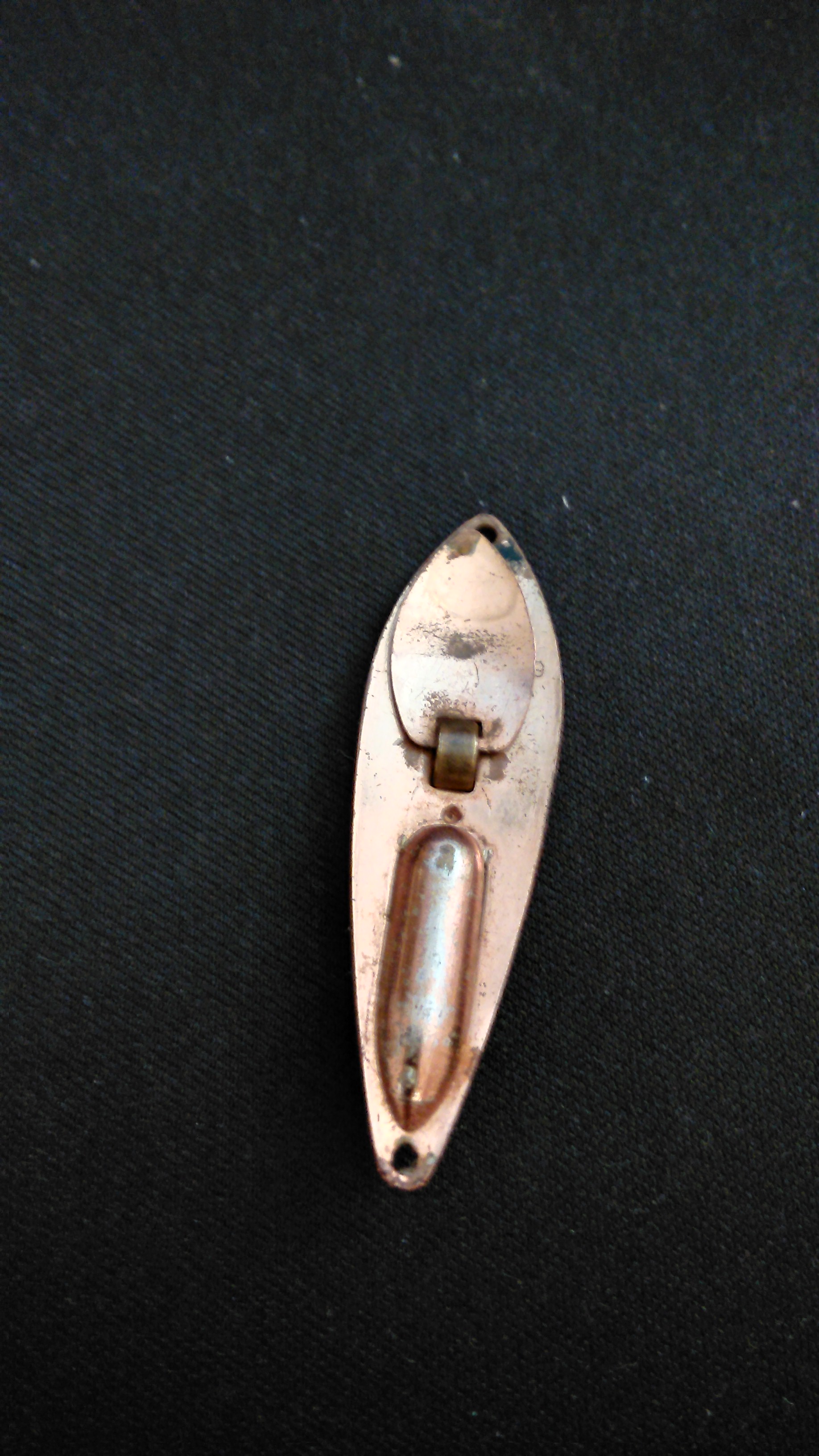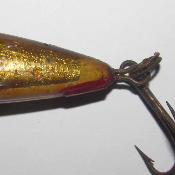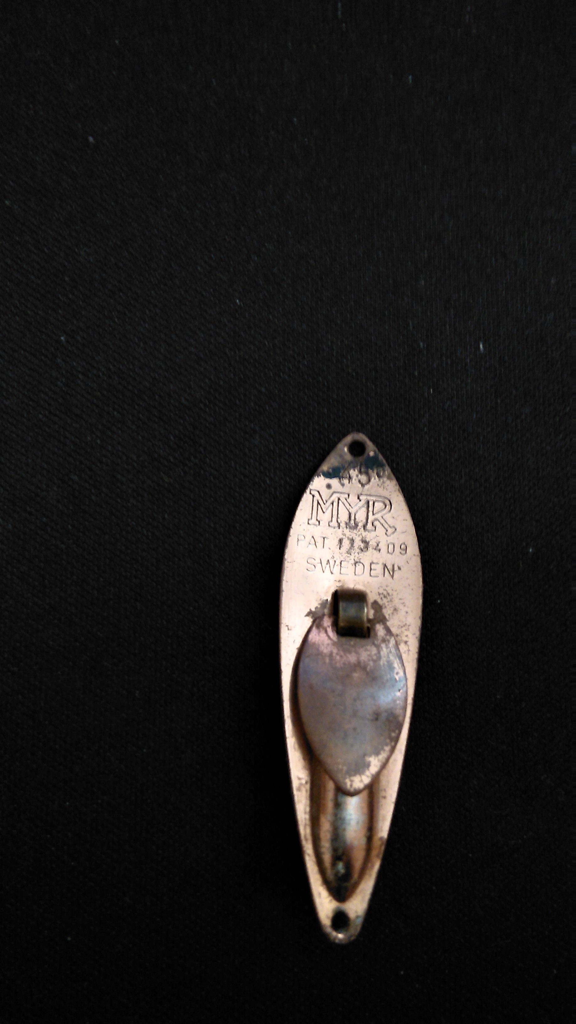 Vanhempi vaappu tuli omistukseeni. Pituus 100mm ilman lenkkejä. Paino 6g tuossa kunnossa. valkoinen vatsanauha, poyöreä kielilevy. Onkohan kellään hajua valmistajasta? Valitan huonosta kuvasta.