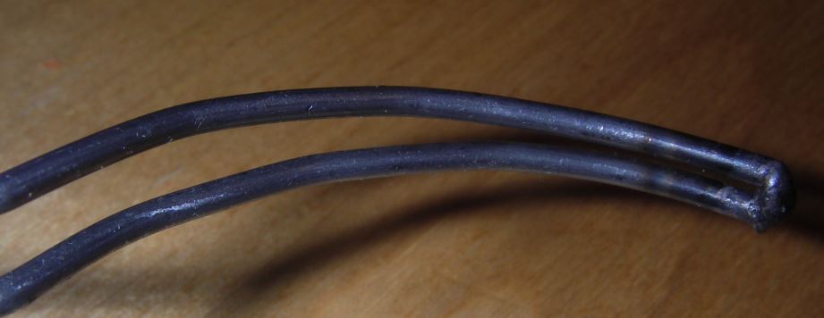 Haarukka sivusta irti rautasahalla ja viilalla tyngän tasoitus, sisälle jäi noin 1 cm pituinen pätkä entisestä takahaarukasta.