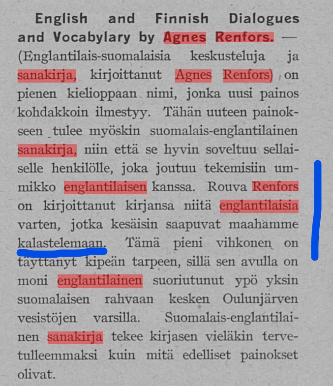 Veikkaan: sanakirjassa on Renforssin kalastusvälineiden mainontaa mukana, jossain muodossa ?
