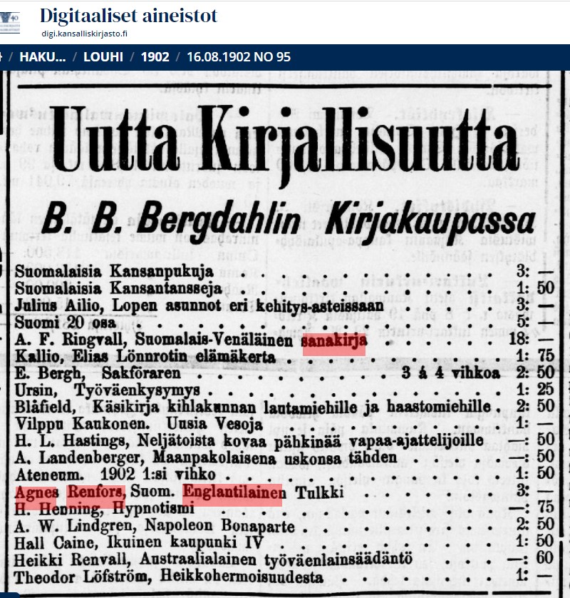 (hämäävästi tampereella vaikutti "toinen Agnes Renfors" noin samoihin aikoihin)