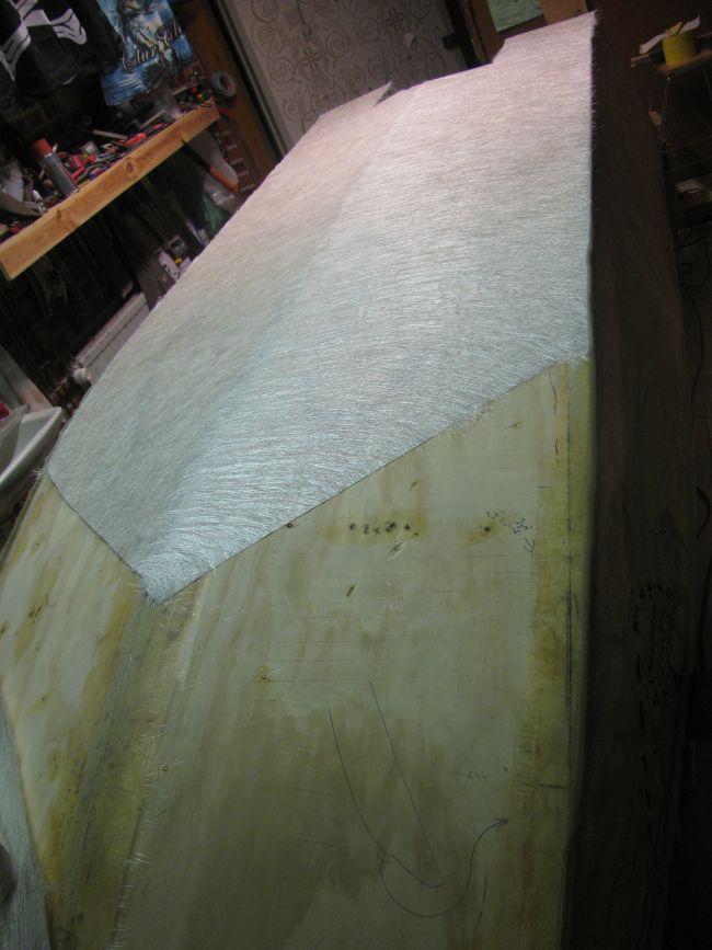 Pikkusen aloiteltu kuiduttelua. Hartsi vaan loppu niin ei päässy loppuun asti nuiden kulmien kanssa. Kuidutin tohon tollasen soiron jota vasten saa "valettua" nuo paalteet sitten kokonaan kuidusta, ettei heti tule vaneerit näkyviin ku kiviin kolisee kumminkin harvase kerta.