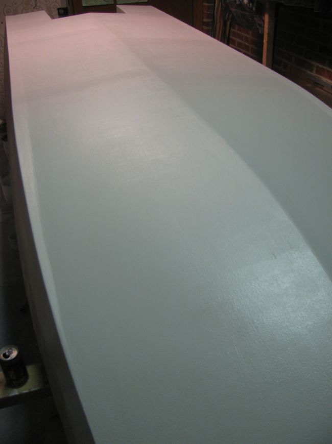 Eka tosiaan tulee tuo katkokuitu koko pohjaaan lukuunottamatta nokasta aluetta joka on vesilinjan yllä. Senku saa tehtyä niin pienet välihiomiset suoruuden maksimoimiseksi ja sitten uudelleen kauttaaltaan punotulla. Sittenpä ei olekkaan jäljellä kuin kylet.