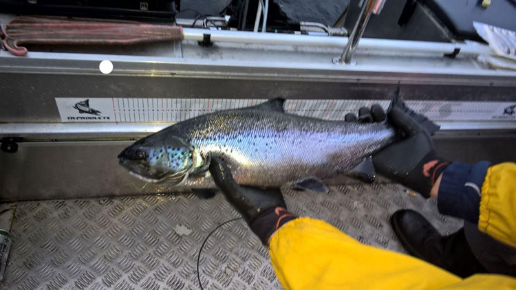 Pintavesi on nyt lohikalalle optimaalinen 5-6 astetta. Kun mennään jouluun, niin pintavesi on 3- asteista ja 5- asteinen vesi jossain 4-10m syvyydellä. Tuolloin kalat ovatkin välillä näissä syvyyksissä.