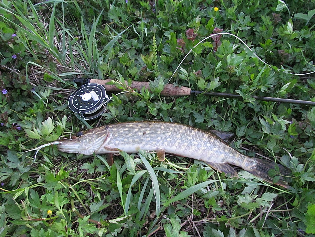 kuvan hauki pelästytti tärpillään: repäsy ja heti ilmaan. tuntui että kauan sai odottaa ennenkuin tipahti takas veteen..