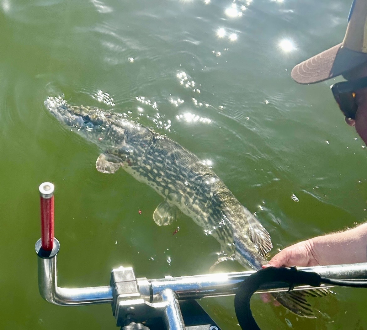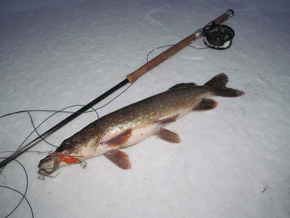 vikat kuvat: hauki pelastunut saukon kynsistä. tyypilliset jäljet pyrstöpuolella.