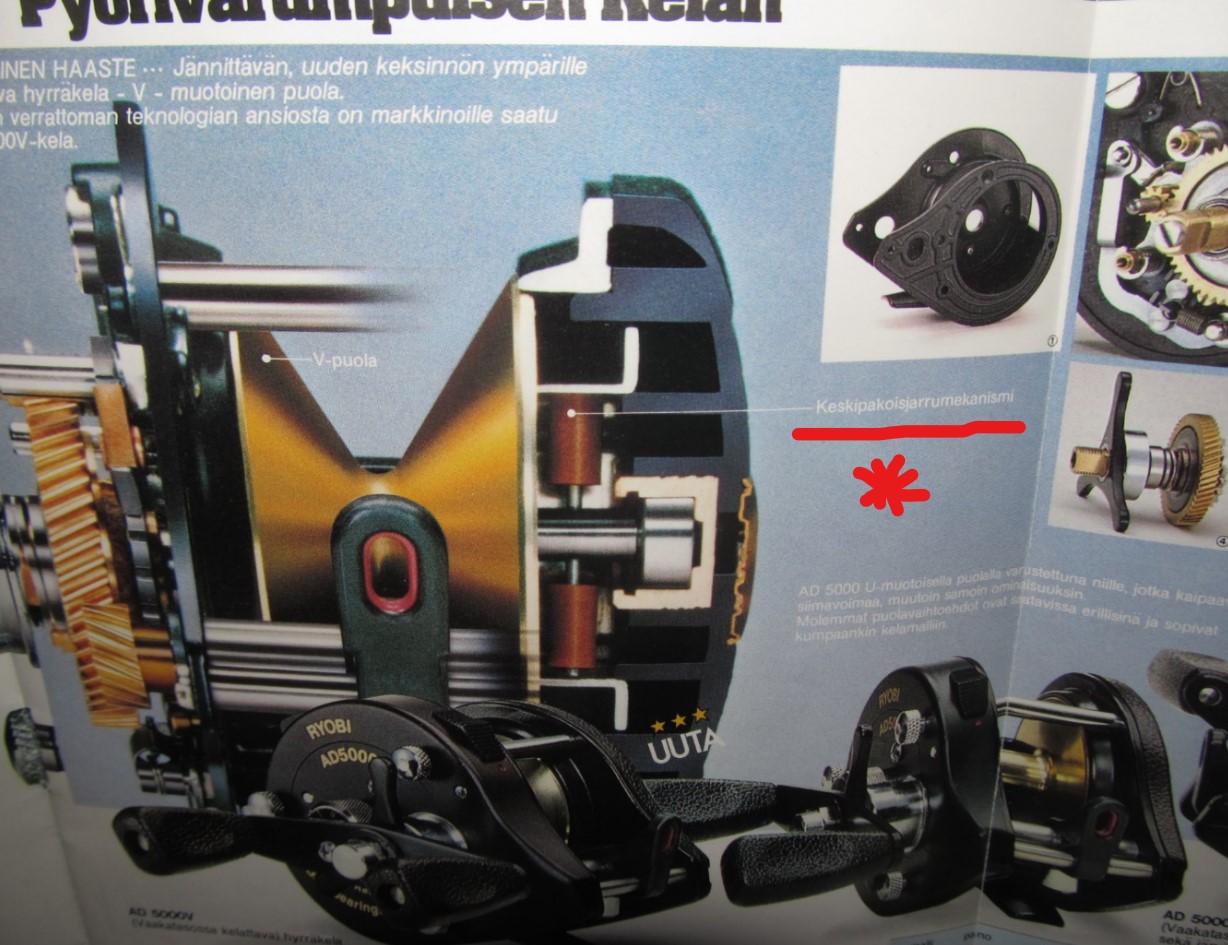 ^Ryobi AD 5000 puola löytyi ebaysta myynnissä ja siitä näki että on keskipakoisjarrukela kahdella palalla, kuten silloin kaikki.