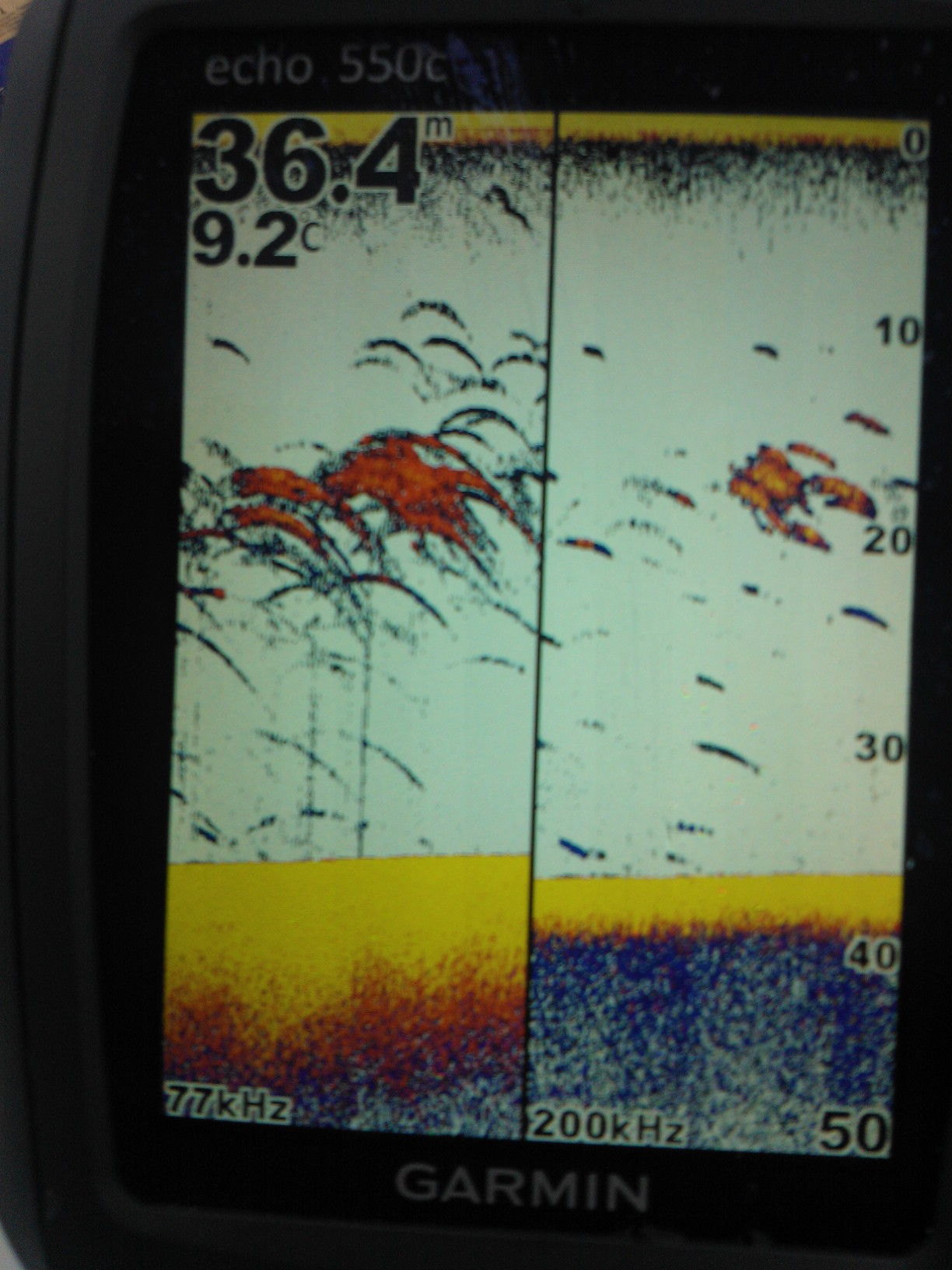 Kantsa kirjoitti:Hei, ostin nyt itsekin garminin echomap 50s luotain/plotterin. Sehän on sama luotain käytännössä kuin 550c. Nyt vain sellainen ongelma, että kun laitan taajuudeksi 77khz niin piirtää pohjan oikeaan kohtaan mutta ilmoittaa syvyydeksi mitä sattuu. Esimerkiksi jos vettä on sen 16m niin heittelee syvyydeksi 16-26m. Sen myötä automaattinen syvyysalueen säätökin pomppii kokoajan ja luotaimen seuraaminen on vaikeaa. Mistähän tämä johtuisi? Samaa ongelmaa ei ole ollut 200khz taajuudella. Garminin tukeen viestiä laitettuani vastasivat vain laittaen ohjekirjan. Ei mitään kommenttia onko se normaalia yms. Kilpailijoiden tuotteet eivät ainakaan ole koskaan noin tehneet (lowrance&humminbird). Ohessa kuva tapahtuneesta