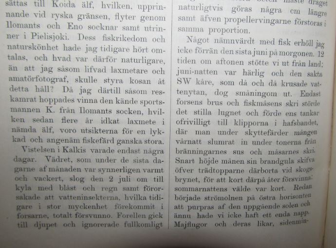 vlasek kirjoitti:Jos joskus mahollista, koppaa tuo Kalkkinen palstalla bliis. Ois mielenkiintoista lukea, miten se on kehittyny ja muuttunu.wee murdoch kirjoitti:Mankalasta ja Vuolenkoskelta oli jotain saalisyhteenvetoja vanhoissa SUKL:n vuosikirjoissa (olivat liiton koskia), mutta niissä taisi yleensä olla vain kauden kokonaissaalis kiloissa. Kyseisten koskien saalispäiväkirjat ovat ikävä kyllä kadonneet liiton arkistosta (jos ovat koskaan siellä olleetkaan.) Kalkkisten klubin päiväkirja on kyllä käsittääkseni tallessa.vlasek kirjoitti:Löytyykö noita painojakaumia laajemminkin kymijoen vesistön eri virtapaikoista? Mankalasta ois kiva nähä statseja. Mielenkiintoinen ja aika uniitti tuo lienee rakenteeltaan muutenkin.