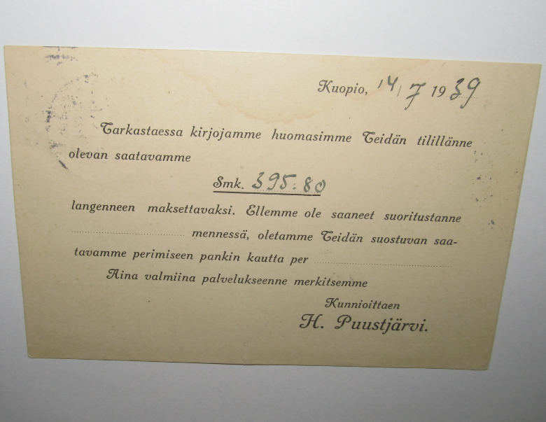 kirjeen lähettämisen aikaan jatkosota täydessä käynnissä. 24. 9 1941