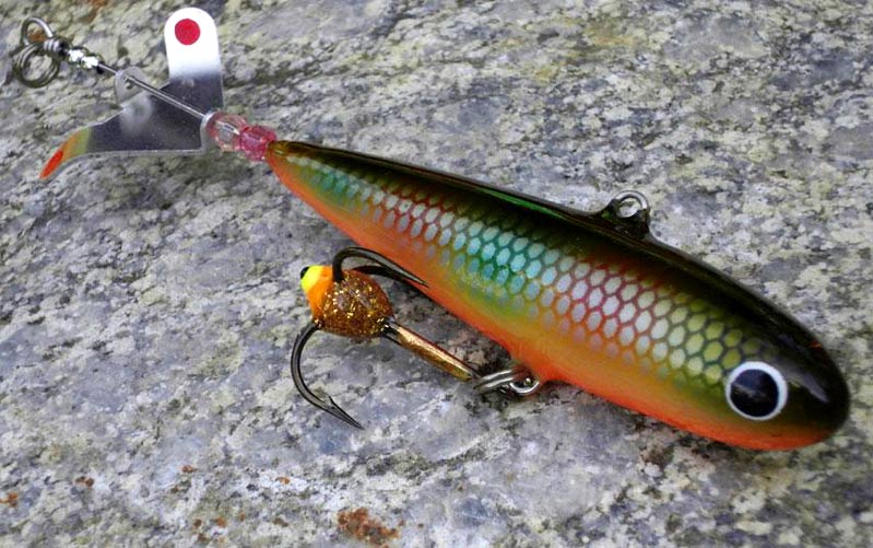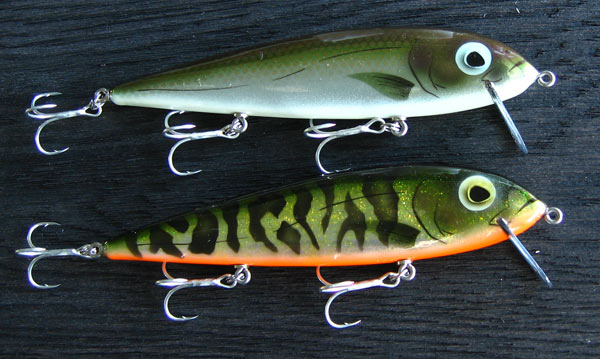 Solid resin jerkbaits in different set ups: Hybrid, Double Props and Prop/Skirt (replaceable)