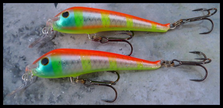 noniin tämmönen paranneltu versio tomidasta pituutta 17cm ja paino siinä 75g tienoilla. kalaakin jo saatu ja keskiviikkona kokopäivän testiin. malli ns. "hitaasti kelluva" ja ui tarvittaessa aivan pintakalvossa. veikkaisin että näyttää kyntensä kylmässä vedessä.