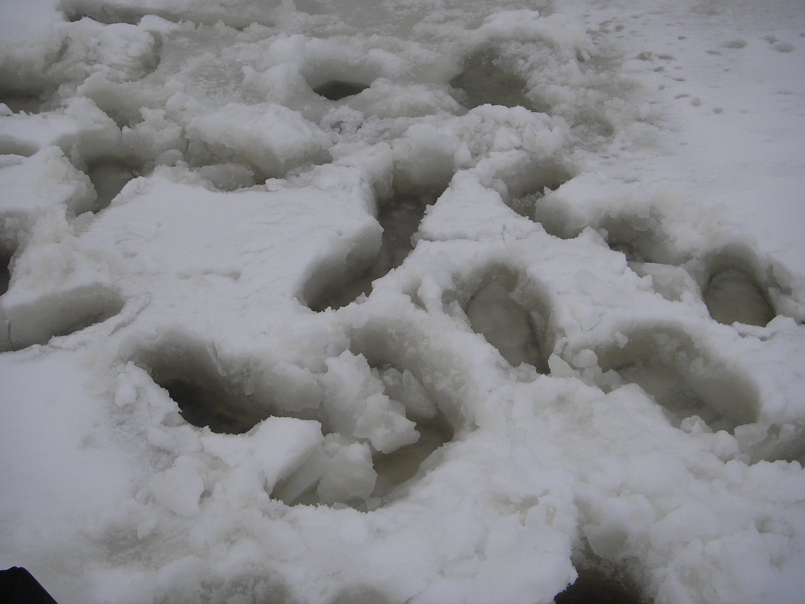Tulee olemaan Väinölänlahti keväämmällä vaarallinen paikka, jos on nyt jo noin hautonut jää, jos ei kovempia pakkasia tule. Ainakin yksi lähde on pohjassa siinä syvänteen päällä, lähellä lahden keskikohtaa, tuli takavuosina huomattua, miten jää vaihteli.