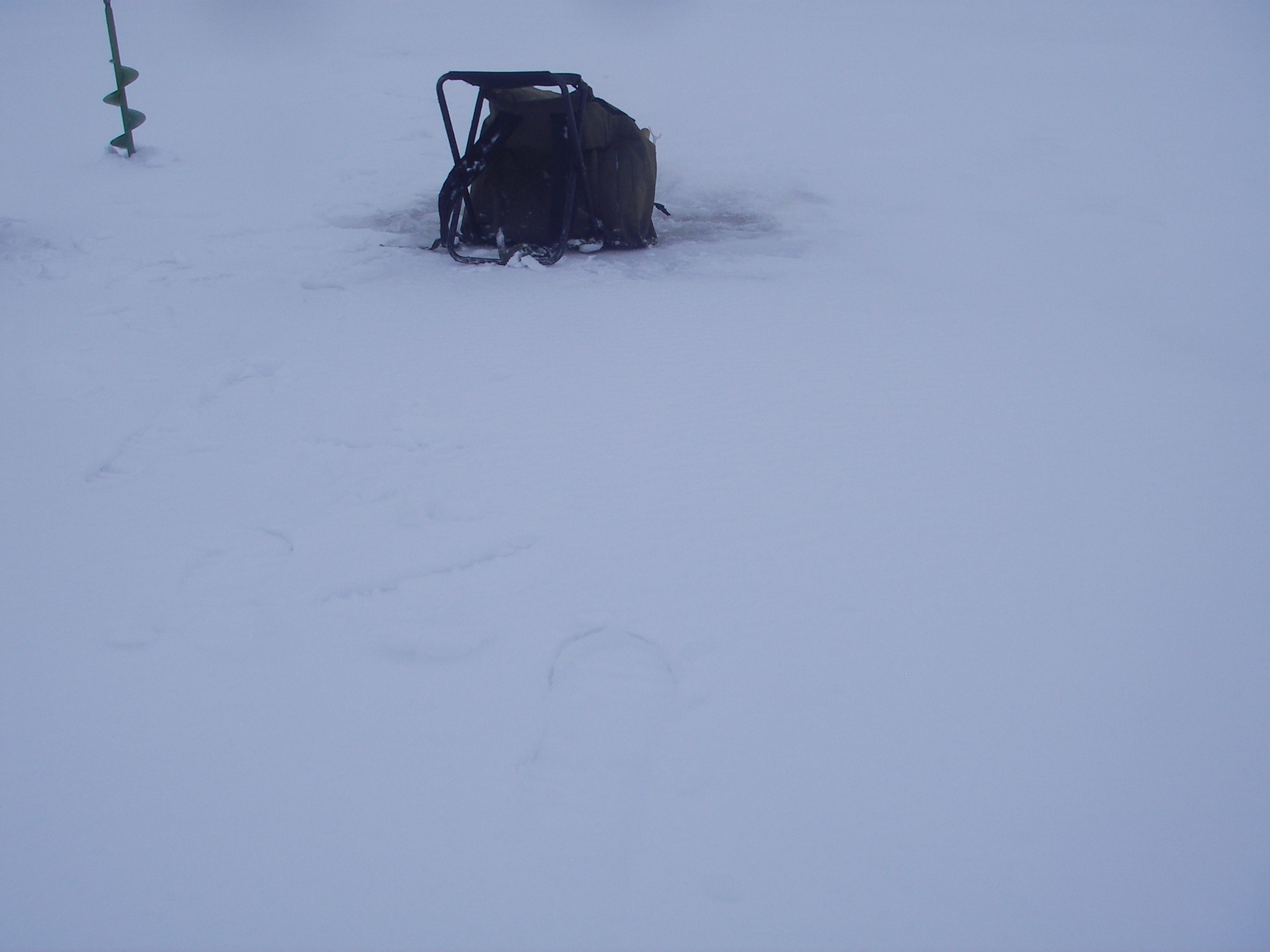 Pois tullessa koplasin Väinölänlahden ja täällä oli pahasti päässyt vettymään lumikerros ja vesi oli vaikuttanut vaikuttanut teräkseen, on päässyt hautomaan lumen alla, , oli semmoista 15-25 cm sohjopaskaa jään päällä. Oli kyllä raskasta porata verrattuna selän kuivaan jäähän. Väinölänlahdella oli vain yksi vaimea nyky, eikä muutenkaan ollut kovin hyvä syänti, 100 grammanen oli isoin, pari 50-70 g, loput sinttejä.