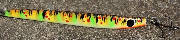 Omalta pajalta piiitkästä aikaa jotain näytille tännekin, nyt olis sitä isompaa koristetta luvassa. Painoa kikottimella kaikkineen n. 85 grammaa, eli lentää aika jouhevasti. Näissä ylälätkä on kymppikokoa, alempana "vain" #7. Näissä on vetovastus aika ruhtinaallinen, luulis että kalakin herää kun tällasella kyntää vierestä