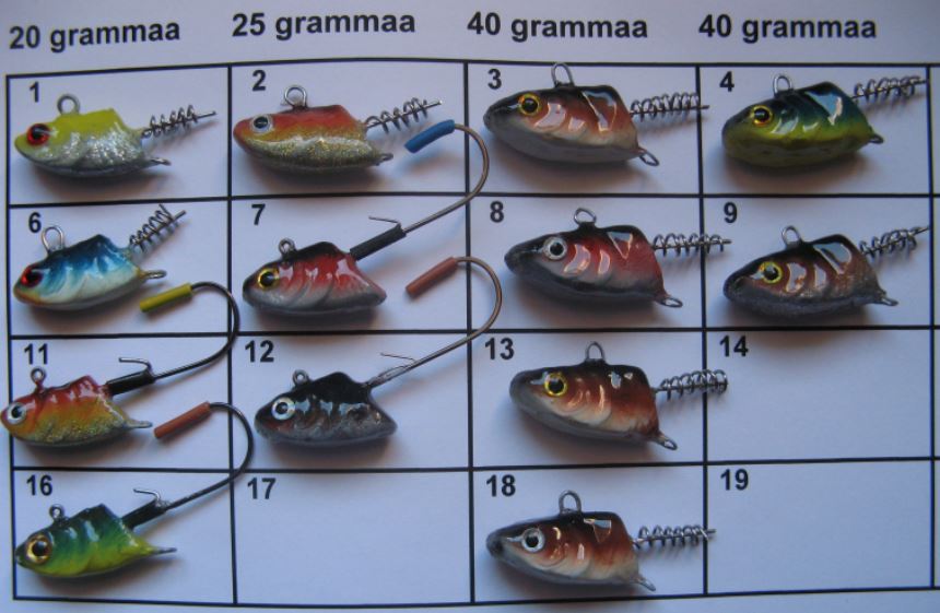 Siinä erässä on myös tuolla ylempänä toivottuja painavampia päitä. (40g)