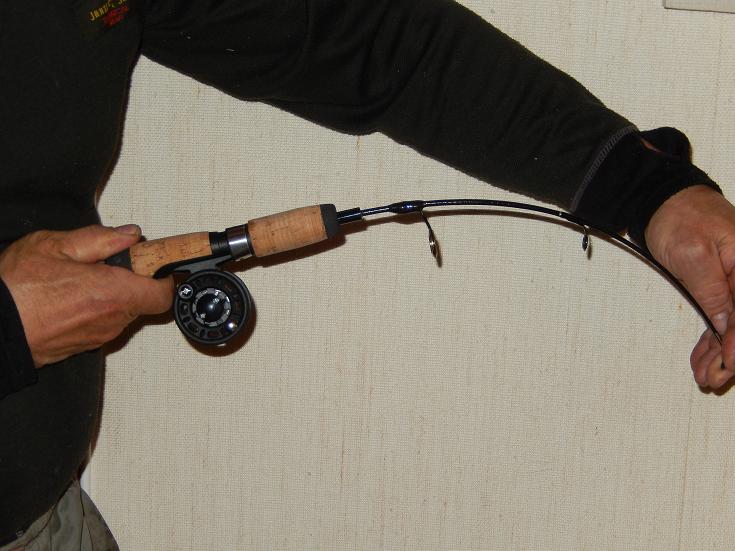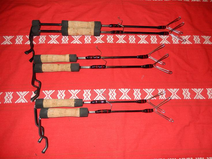 - Kelaonkiin olen vaihtanut kelaa lähimmän vaparenkaan pilkkimiseen sopivaksi. Vavat on jämäköitä, mutta hieman taipuvia. Pituus 45-50cm.